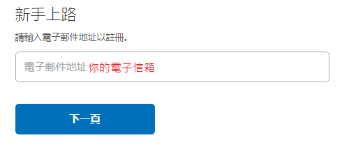 之後輸入你要用來當帳號的電子信箱,點下一頁